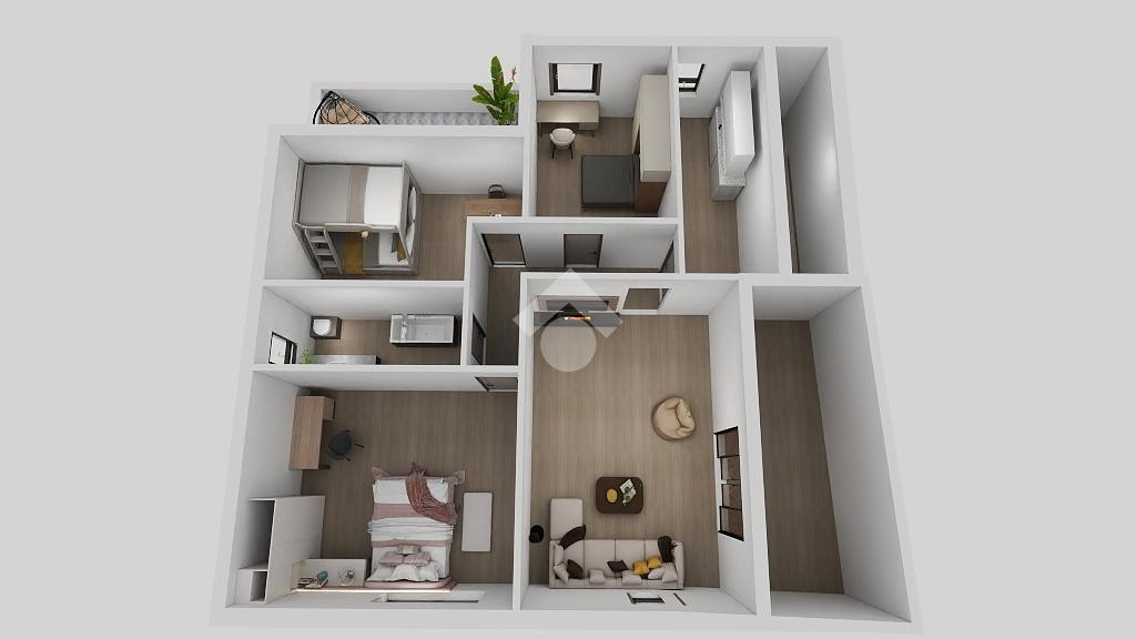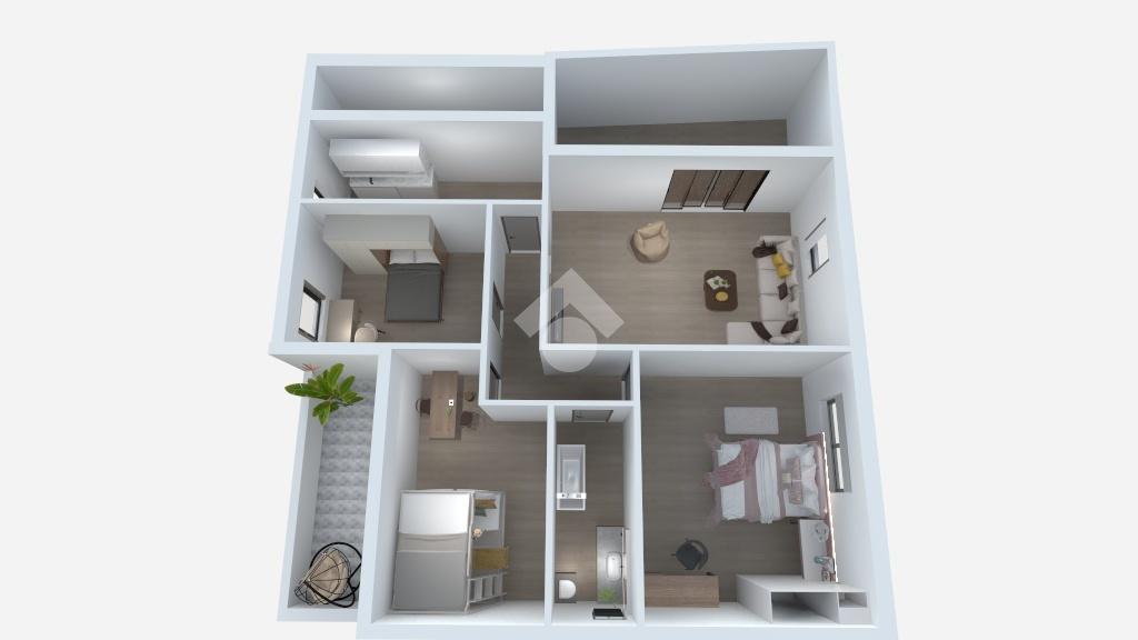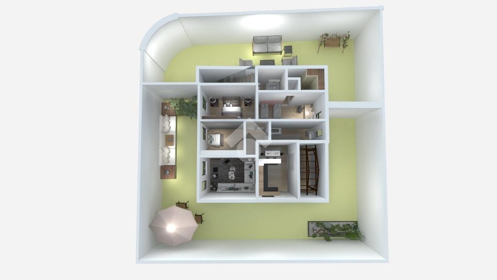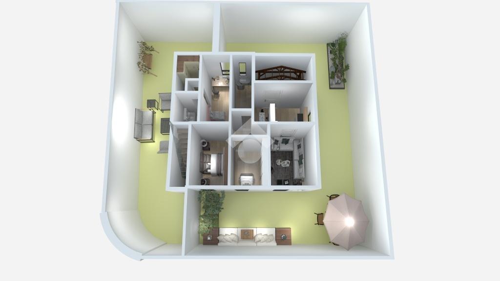 Al piano terra il progetto prevede un ampio cortile di circa 200 mq, loggiato, soggiorno, cucina abitabile separata, tre camere, due bagni e cabina armadio.