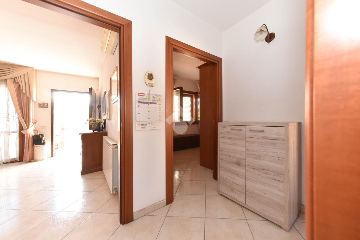L’ingresso si apre su una luminosa zona giorno, caratterizzata da una doppia porta finestra che affaccia direttamente sul cortile d'ingresso, creando un ambiente arioso e ben collegato con l’esterno.