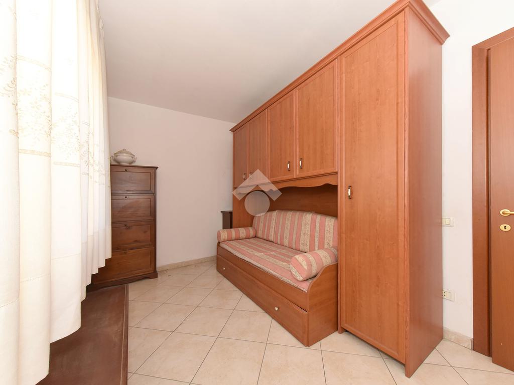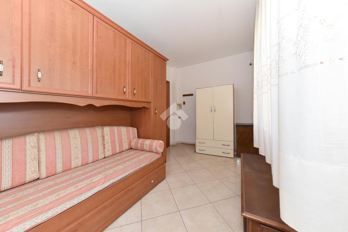 Attraverso un disimpegno si accede alla zona notte, composta da una camera matrimoniale, una camera singola e un bagno finestrato, recentemente rinnovato e dotato di un ampio box doccia.