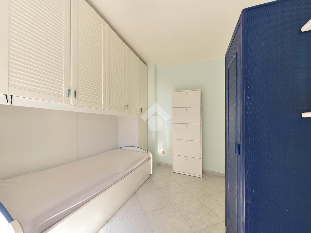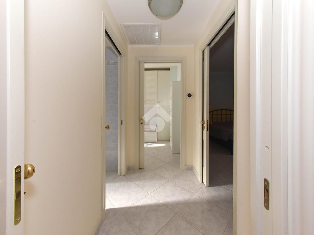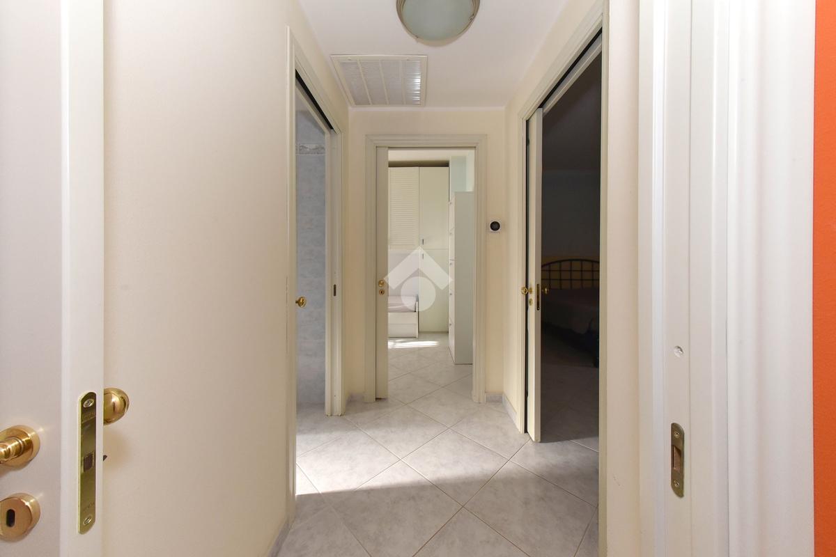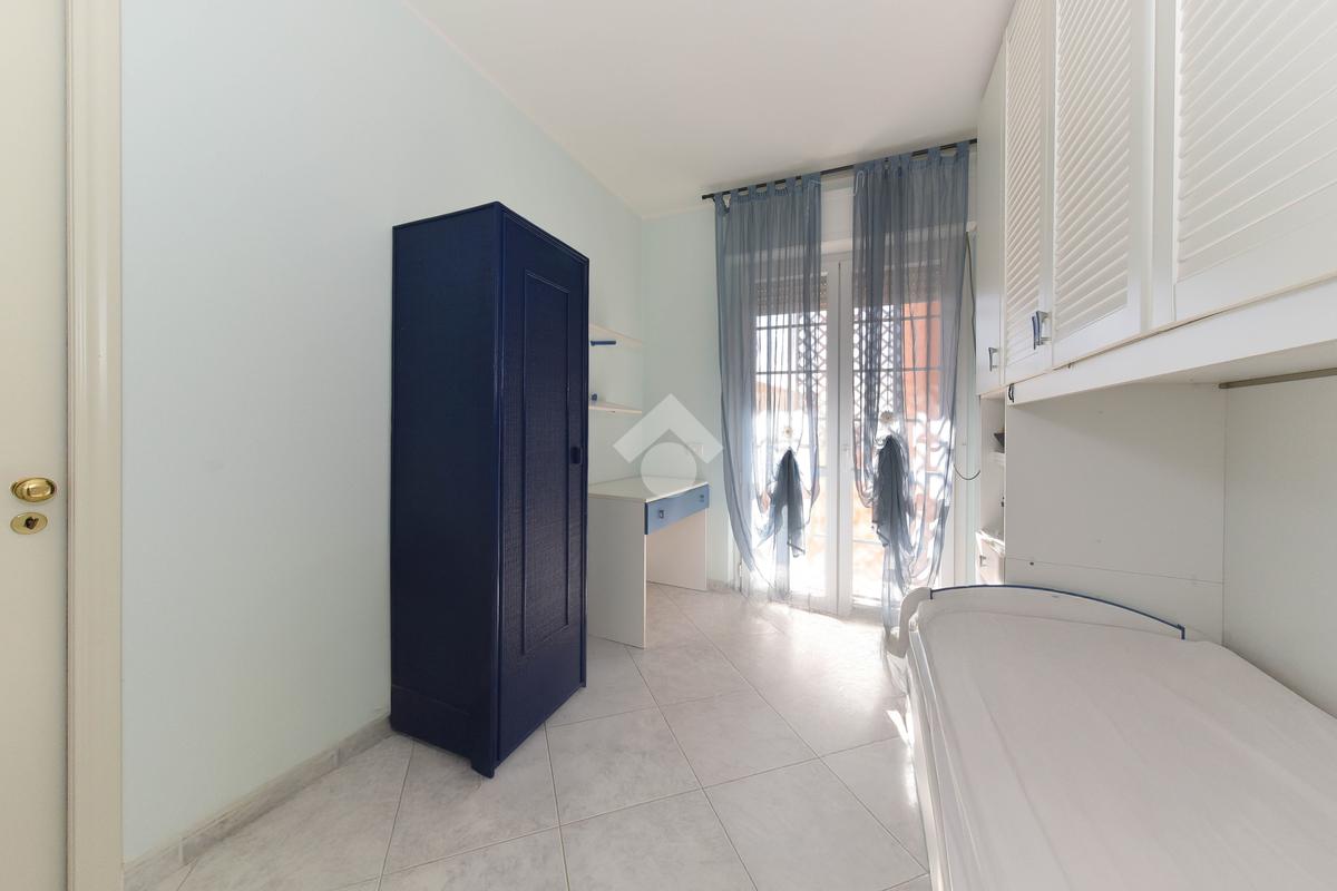La zona notte si raggiunge tramite un comodo disimpegno e comprende una camera matrimoniale di generose dimensioni, una camera singola e un bagno finestrato completo di vasca e box doccia. Entrambe le camere hanno accesso ai balconi.