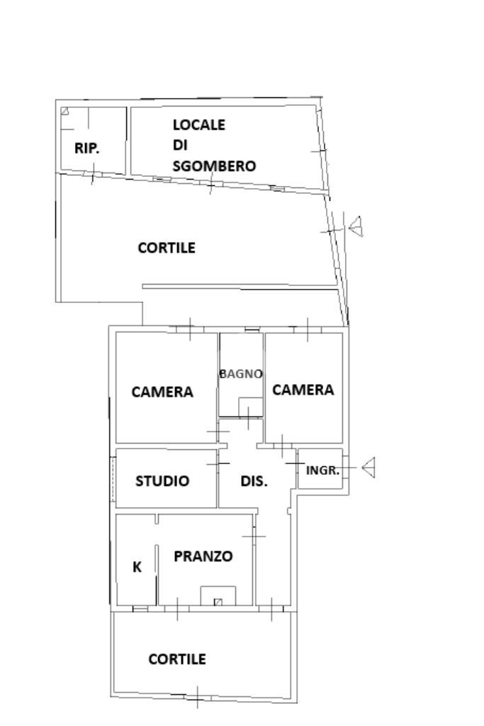 Si precisa che il cortile sul retro è di proprietà, tuttavia rimane gravato da diritto di passaggio a favore dei proprietari della mansarda sovrastante.