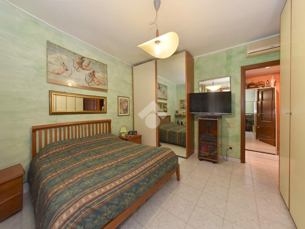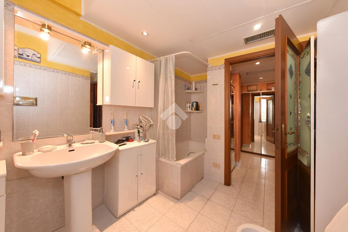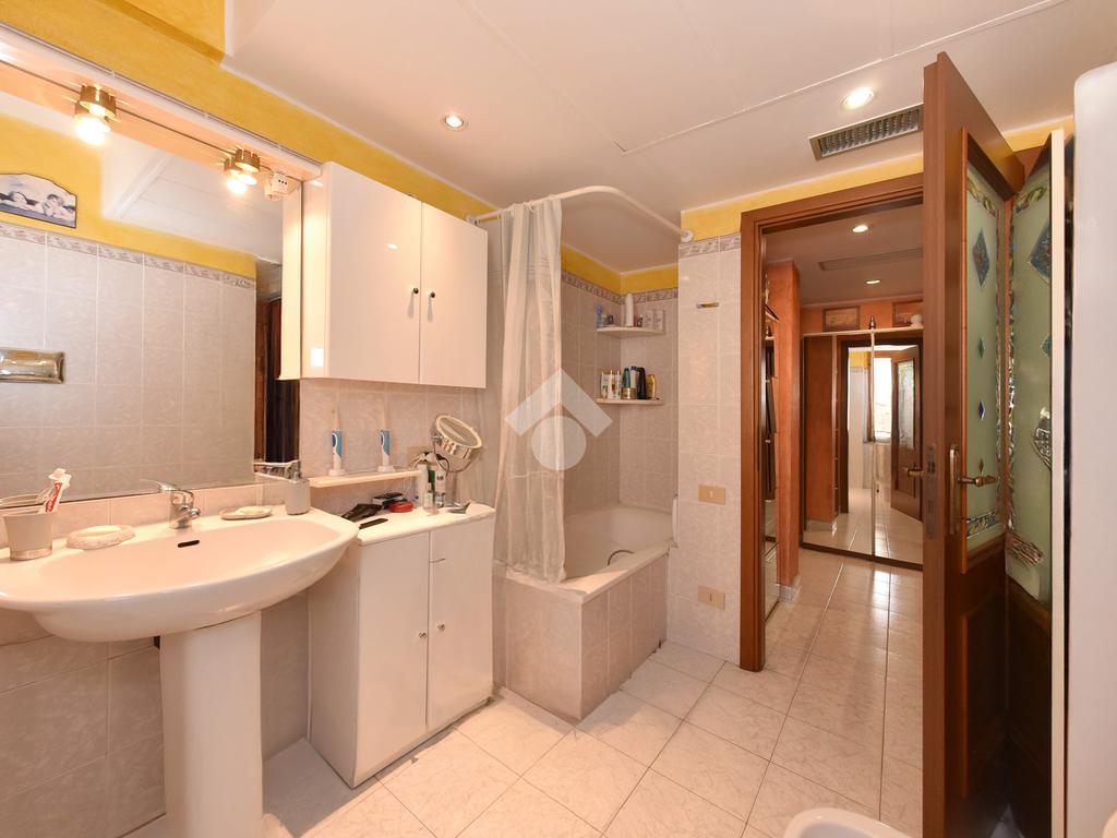 Un disimpegno conduce alla zona notte, composta da una camera matrimoniale e una camera singola, entrambe dotate di porta finestra con accesso al secondo balcone verandato. Il bagno, spazioso e funzionale, è dotato di vasca.